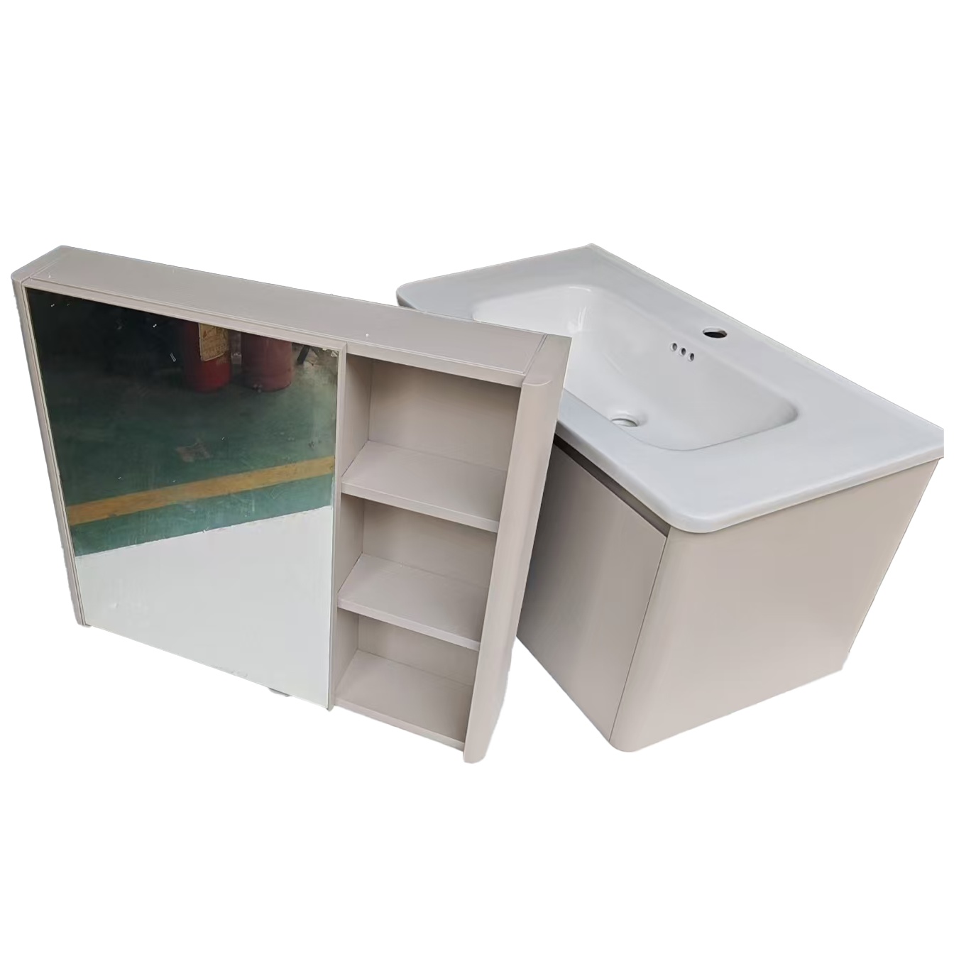 Complete set including both the top and bottom cabinets for a full bathroom storage solution.